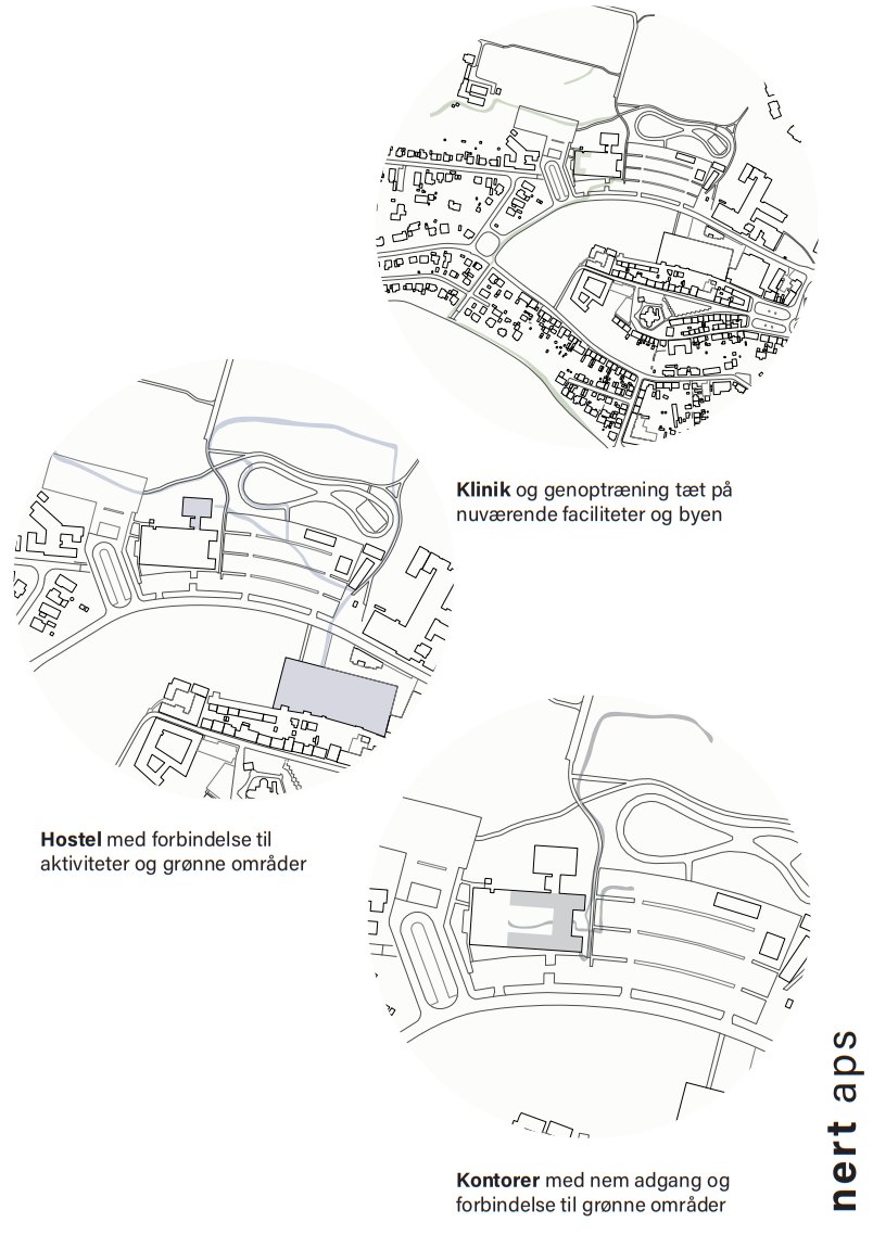 Transformation af tidligere Allikelund Gymnasium til nyt pulserende kulturhus. Huset zoneopdeles i tre områder med hver deres primær funktion, klinik og træning mod vest. Kontorfællesskab mod øst, og hostel mod nord.