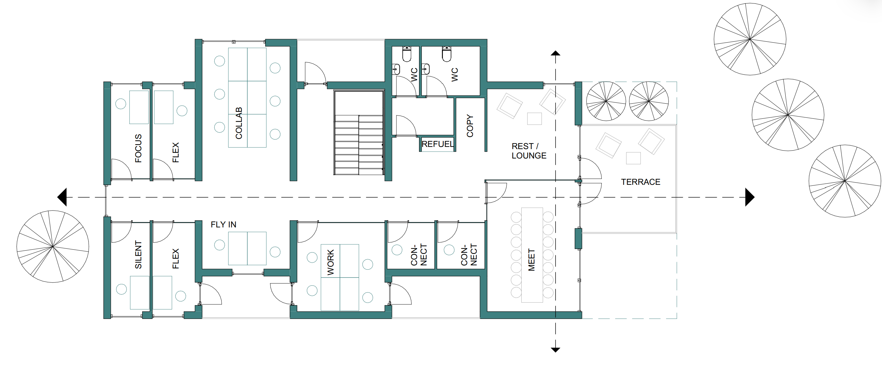 Vi har gennemført et studie af 400 kvadratmeter kontorpavilloner til Novonesis. Med en pragmatisk tilgang har vi arbejdet med modulære enheder i skala. Modulerne kan sammensættes i forskellige kompositioner, efter behov for opgave eller placering, og give et varieret udtryk i området.