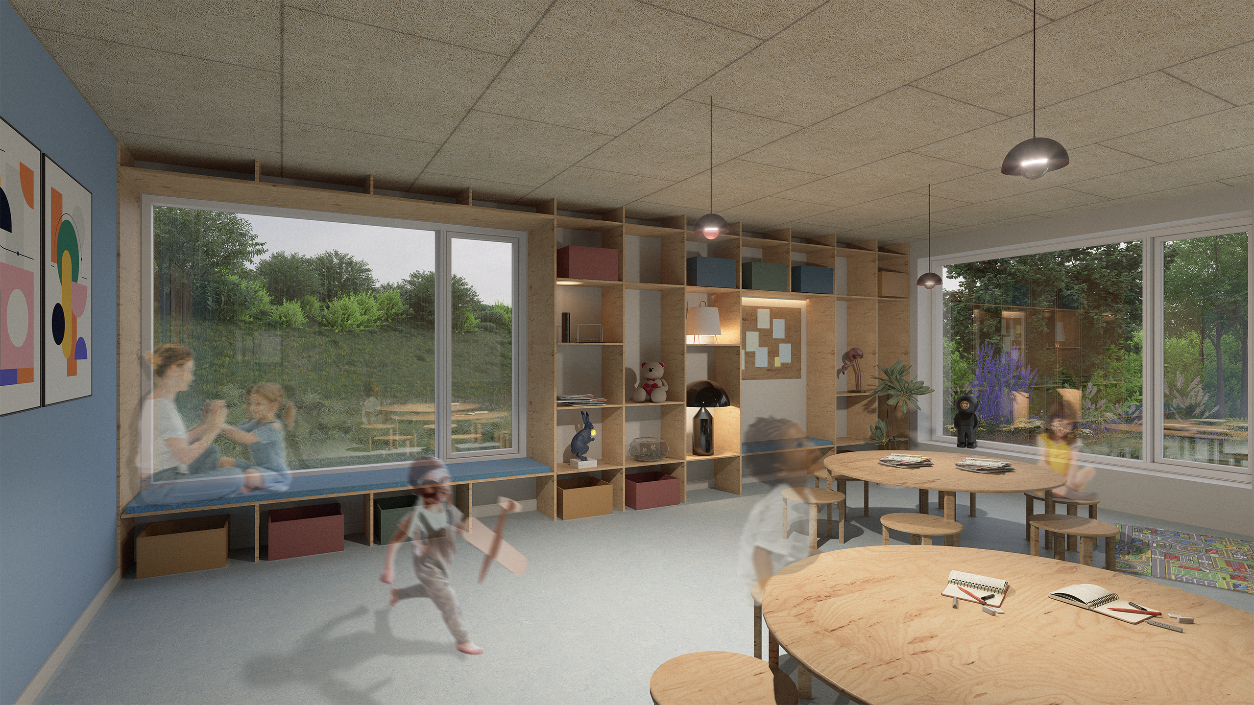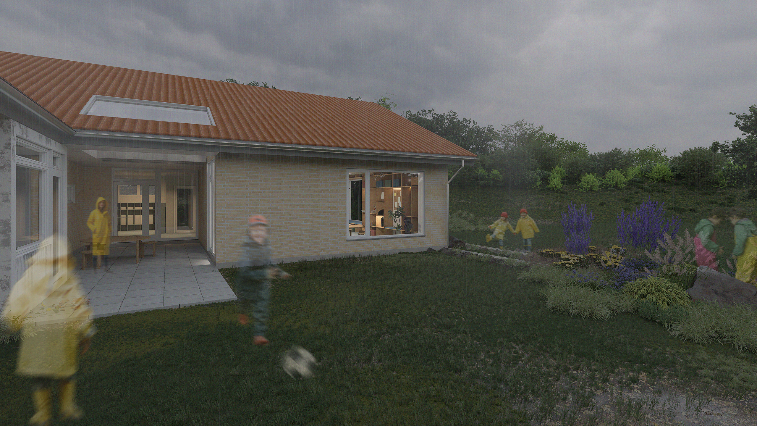 Tilbygning til daginstitutionen Villa Villa Kulla i Sorø. Daginstitutionen udvides med nyt grupperum og mere plads. Tilbygningen udføres i forlængelse af husets nuværende greb, med et strejf af moderne løsninger. Regnvand udføres med åbne vandrender, så børnene kan se vandet løbe over i LAR-bassinet til planter og nedsivning. Indvendigt udføres overflader med varme toner og inventar i træ.
